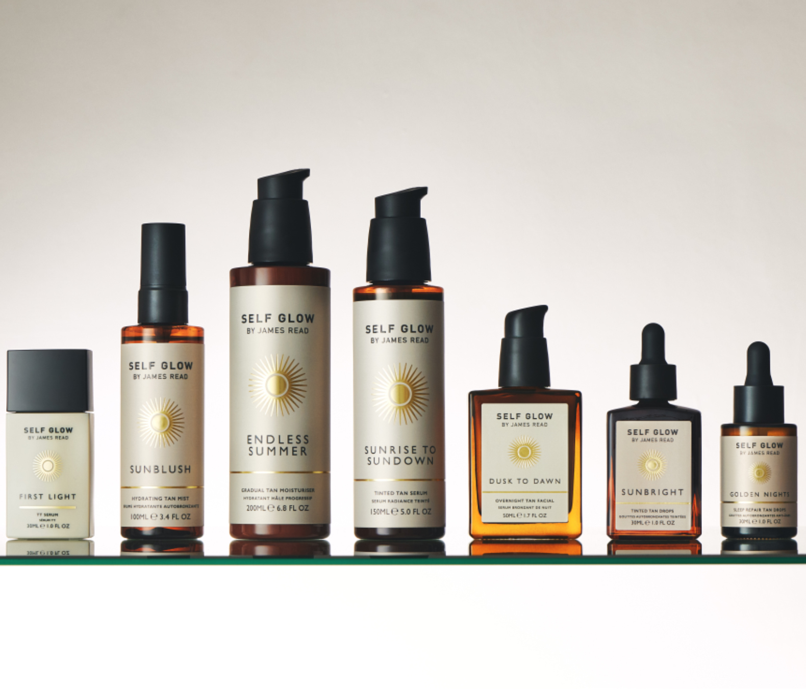 Self Glow by James Read vereint 20 Jahre Expertenwissen in einer luxurio-sen Hybrid-Serie. Der „Tanning-Guru“ der Stars löst hier die Grenze zwischen Hautpflege und Selbstbräuner auf: Wirkstoffe wie Hyaluronsäure, Algen und Fermente pflegen tiefenwirksam, während sie einen maßgeschneider-ten, natürlichen Glow verleihen. Statt künstlicher Bräune steht ein gesunder Glow im Fokus. Die veganen, geruchlosen Formeln ziehen sofort ein und garantieren ein streifenfreies Finish.